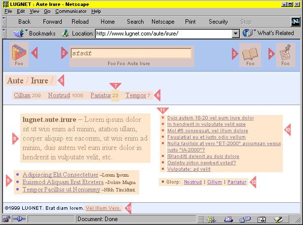 In the web page depicted below, what do each of the areas mean to you? (If you're already somewhat familiar with this new layout, try to think back to what it felt like the first time you saw it.) What do you expect to find behind each hyperlink? ![]() Here is the same layout labeled by numbers for reference: ![]() |